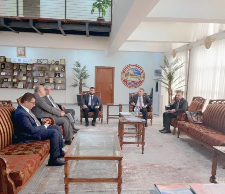 Visit of the delegation of the College of Veterinary Medicine of Basra University (Prof. Jalal Yasin Mustafa) and the guest delegation to the Rector (Prof. Kamran Younis) and in the presence of the Vice Rectors in order to strengthen scientific, academic and cultural relations. The Rector expressed his support for all scientific, academic and cultural activities to the guest delegation and after congratulating them, he asked to continue the coordination in all fields between the two universities and expressed his pleasure to the guest delegation.